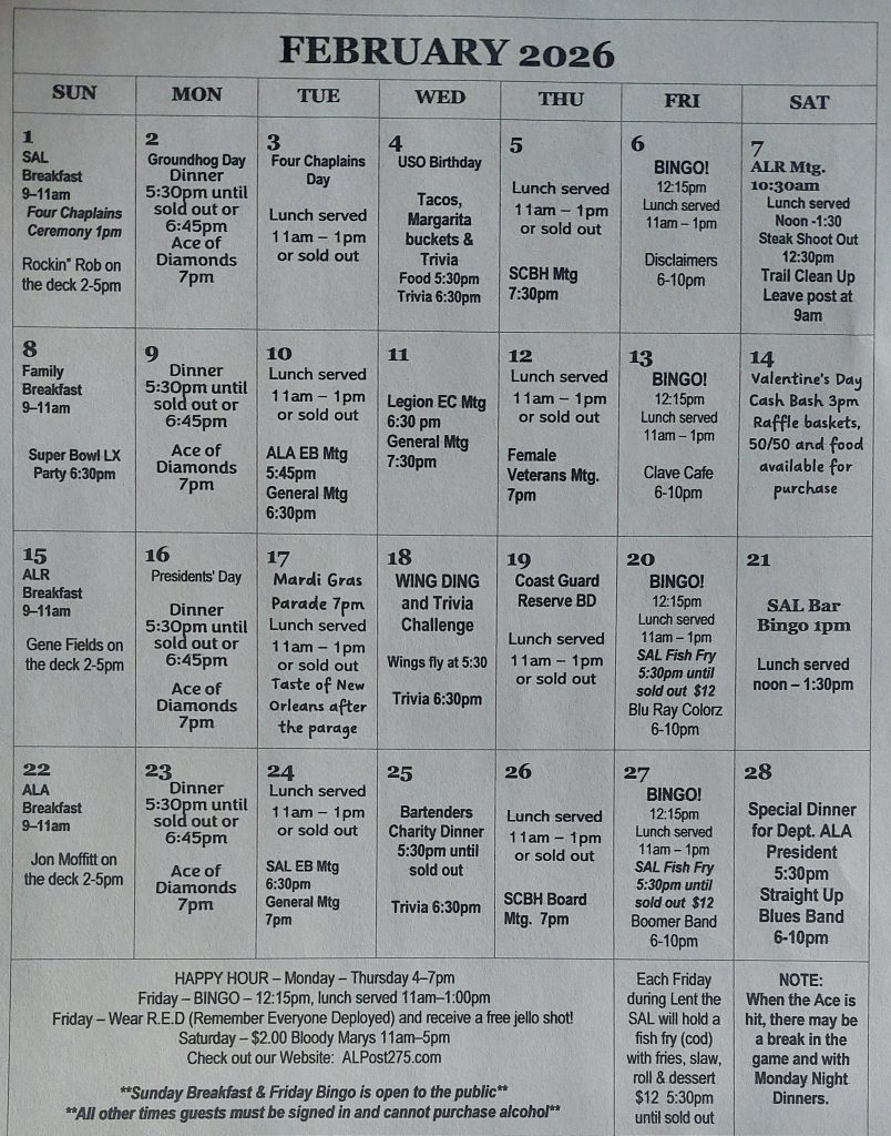 AMERICAN VALUES AND PATRIOTISM – which means The American Legion advocates for upholding and defending the United States Constitution, equal justice and opportunity for everyone and discrimination against no one, youth education, responsible citizenship and honoring military service by observing and participating in memorial events.